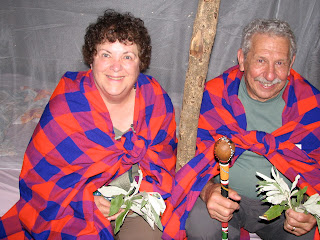 While the goat was being roasted, Art and I were taken to a hut in the village and, in a ceremony, given Maasai names and a blessing. My name is Nashipai (Happy Woman) and Art's is Oloshipa (Happy Man). I told Peter they should have named me "Woman Who Talks". Having been with me for over a week with my many, many questions, Peter just laughed.